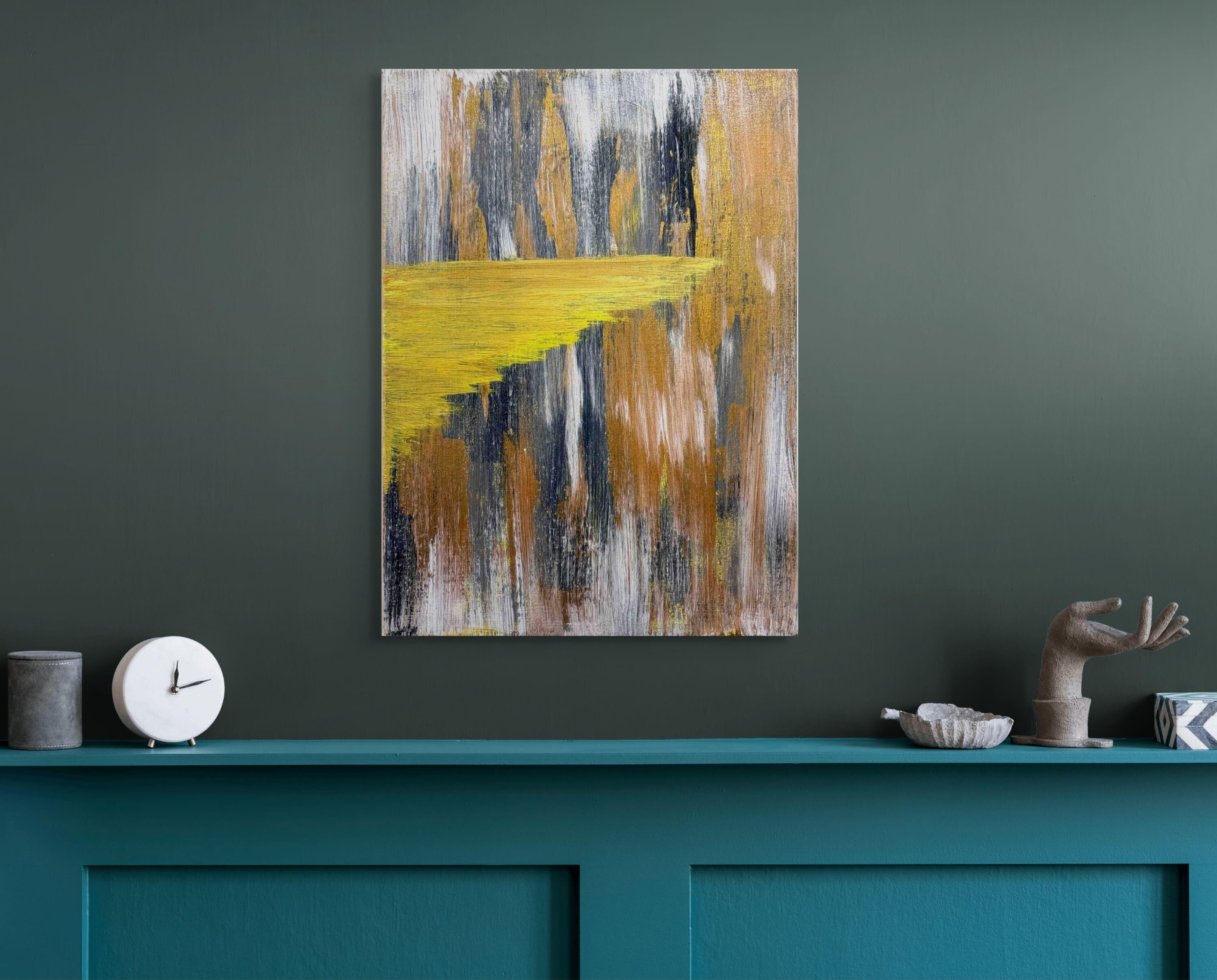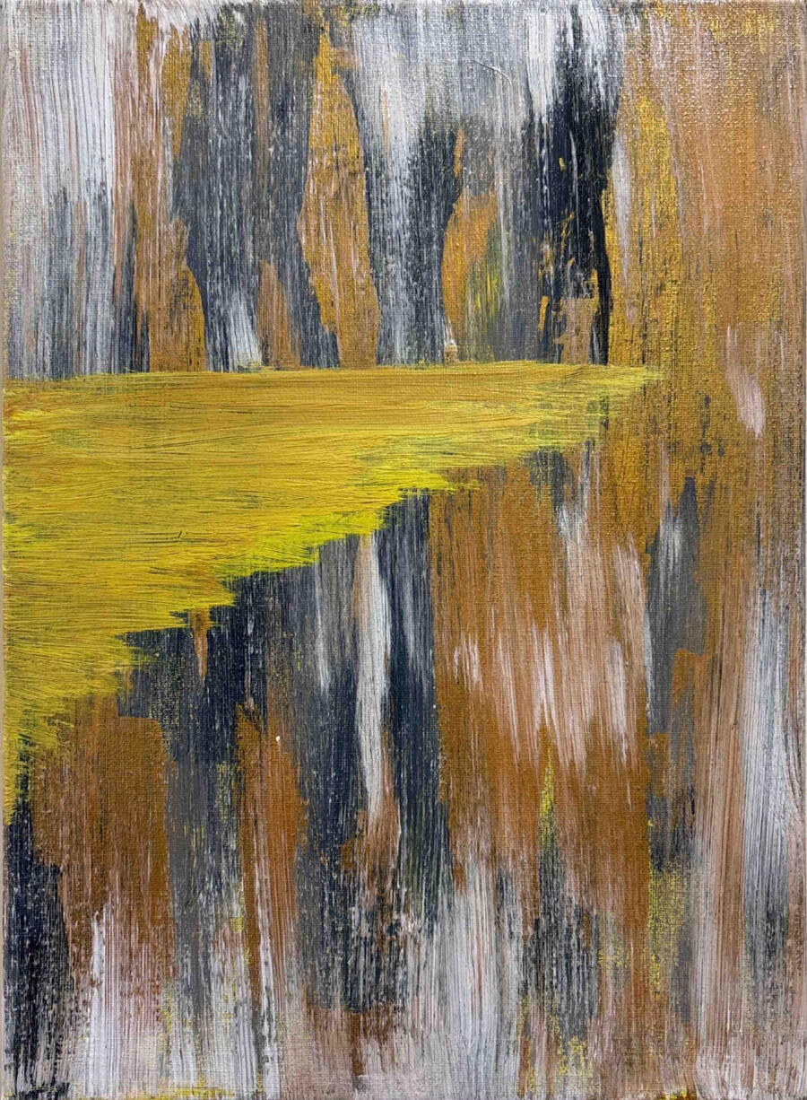 Visually, the piece employs high-tension contrast: a chaotic field of the unconscious serves as a foil to the ascending golden strokes, which possess a powerful sense of verticality and growth. The golden totem at the apex signifies the culmination of cognition. This work challenges the logic of outward searching, redefining "vision" as an inward penetration. It demonstrates a spiritual will that rises steadily amidst a complex world—a visual practice of modern "self-worth realignment."30x40cm, Acrylic on Canvas, 2026