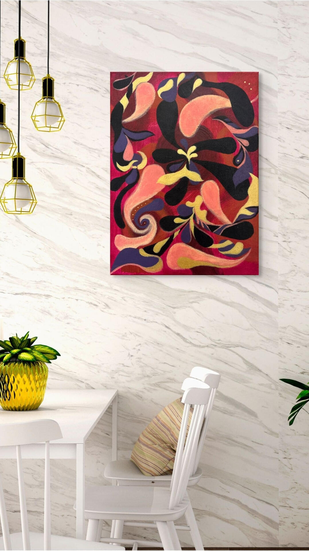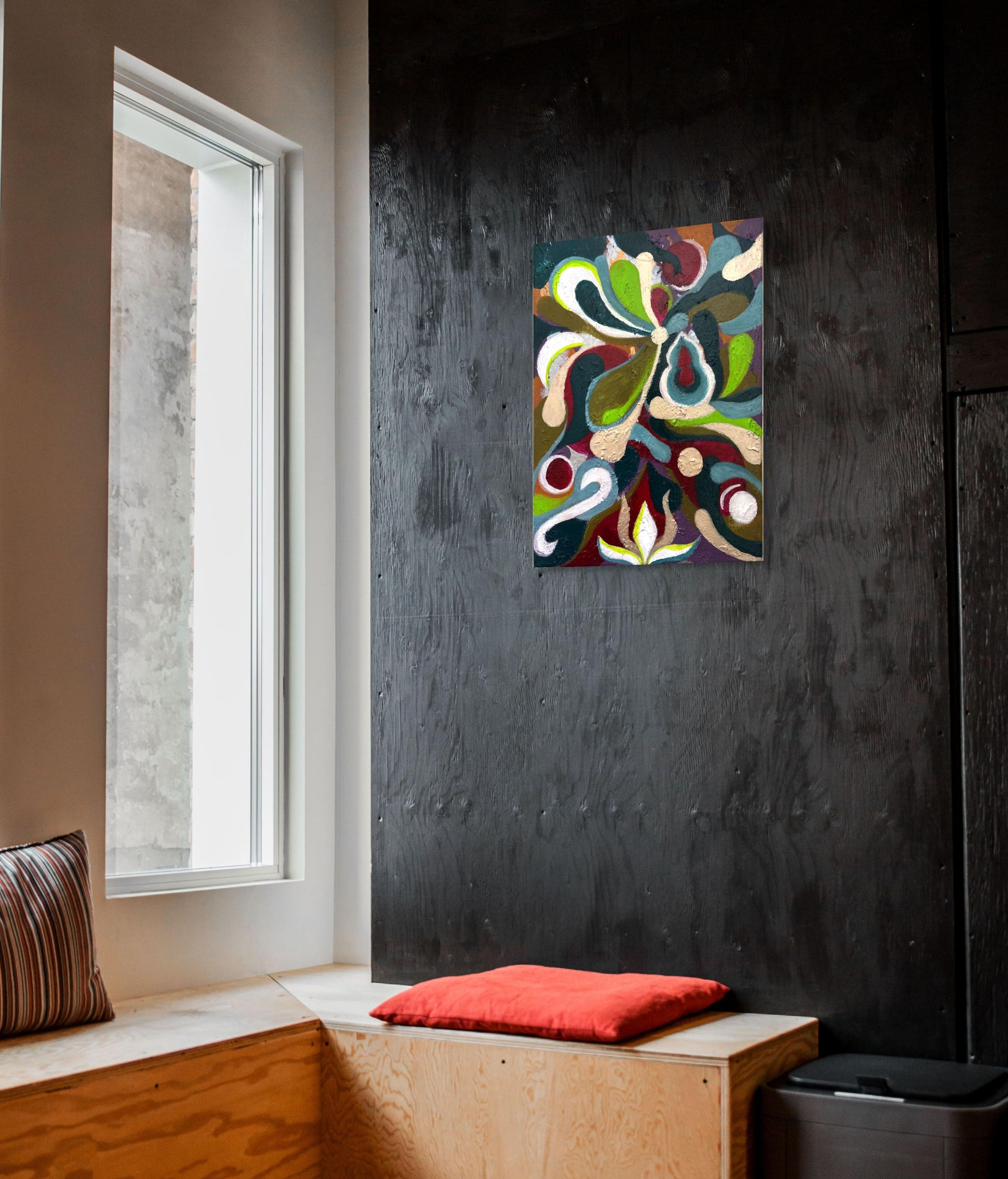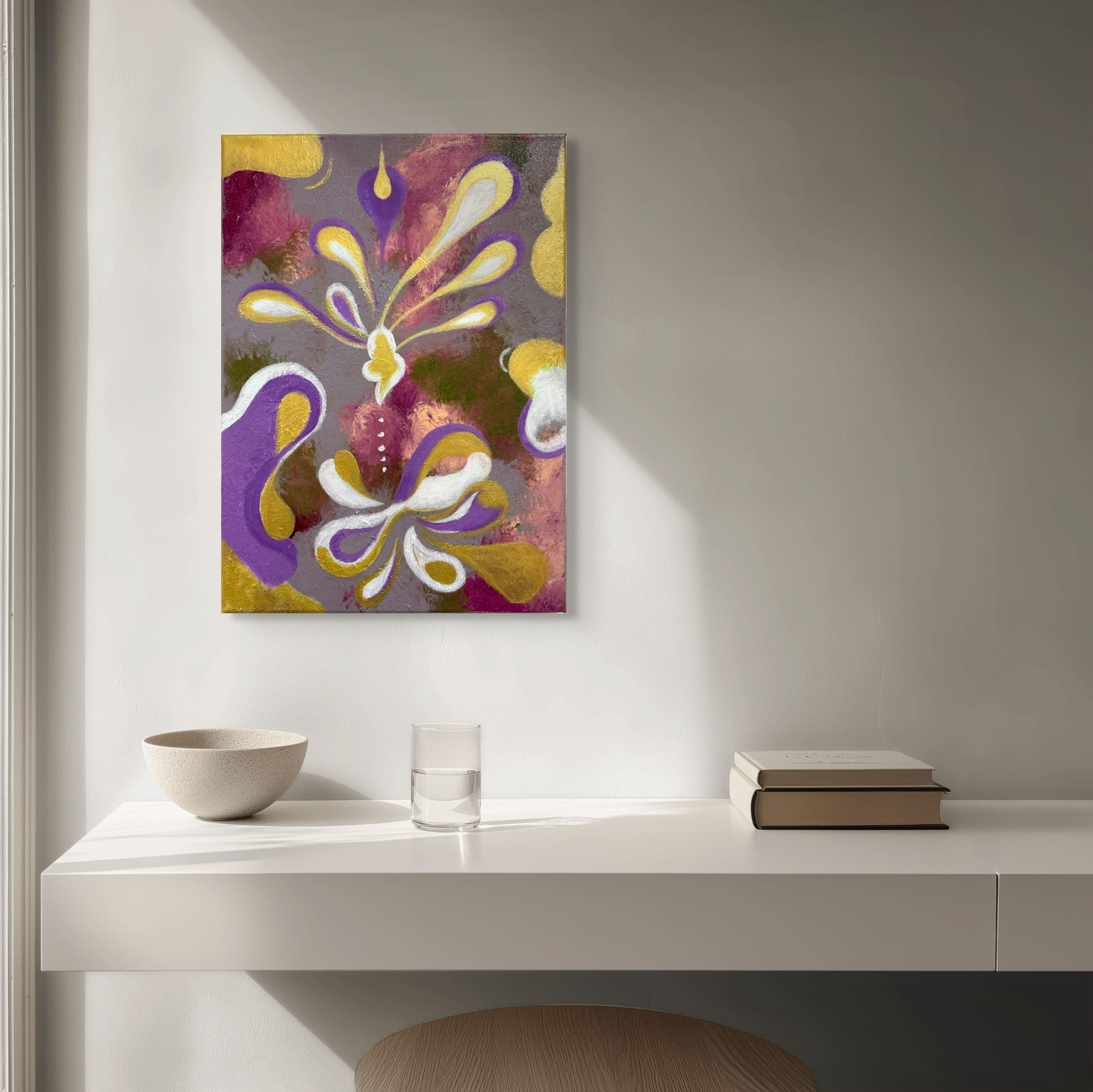 Visually, the piece presents a "Tension of Blooming." The term Efflorescence carries a dual meaning here: the flourishing of life, and the stripping away of superficial layers to reveal the primordial truth. Through the diffusion of organic lines and colors, the artist records the "Emotional Oscillation" that occurs when consciousness bypasses logic to reach truth. This is a visual experiment in "Mind-to-Mind Transmission," inviting the viewer to complete a deep, silent connection with the work.30x40cm, Acrylic on Canvas, 2026