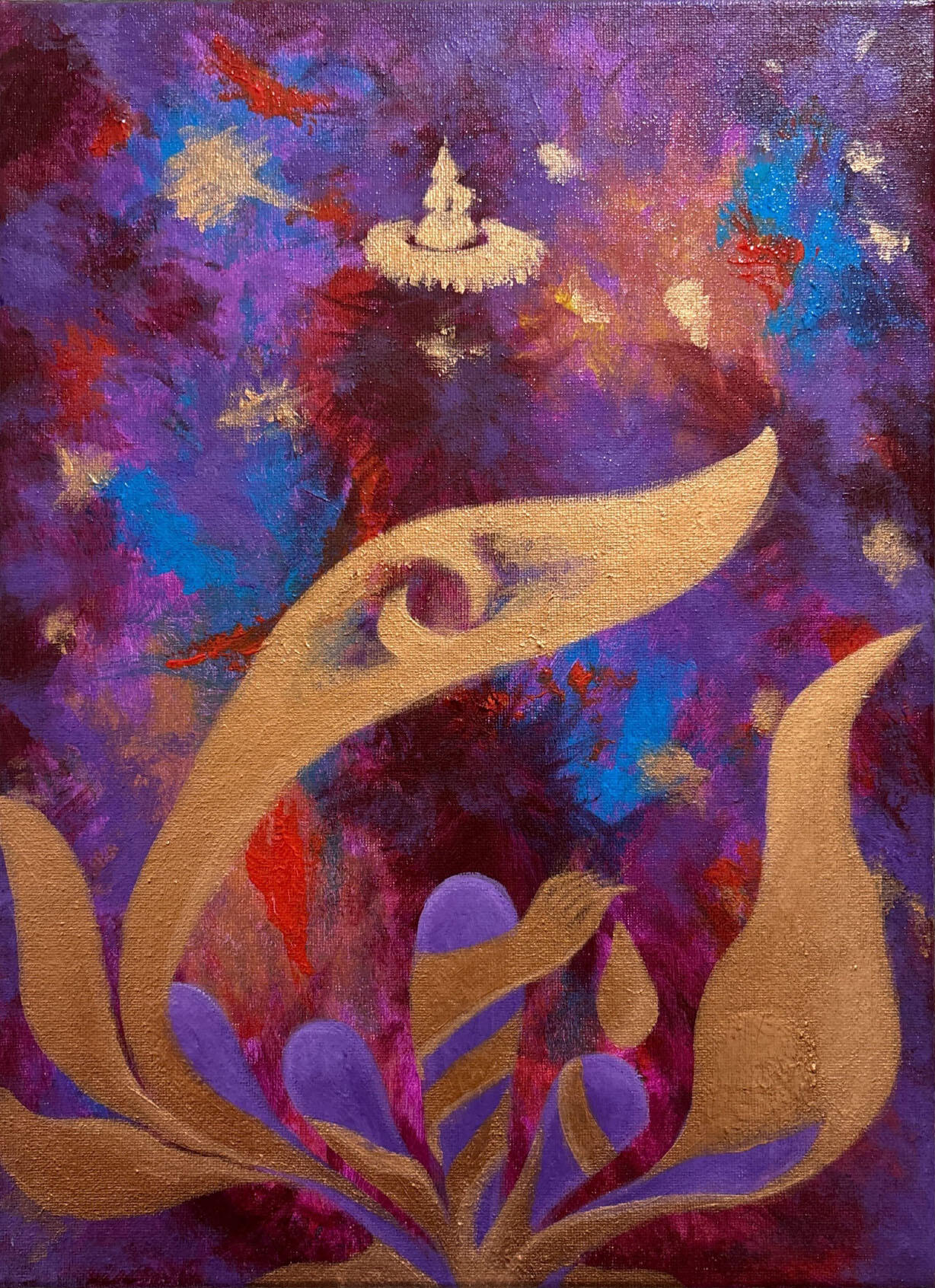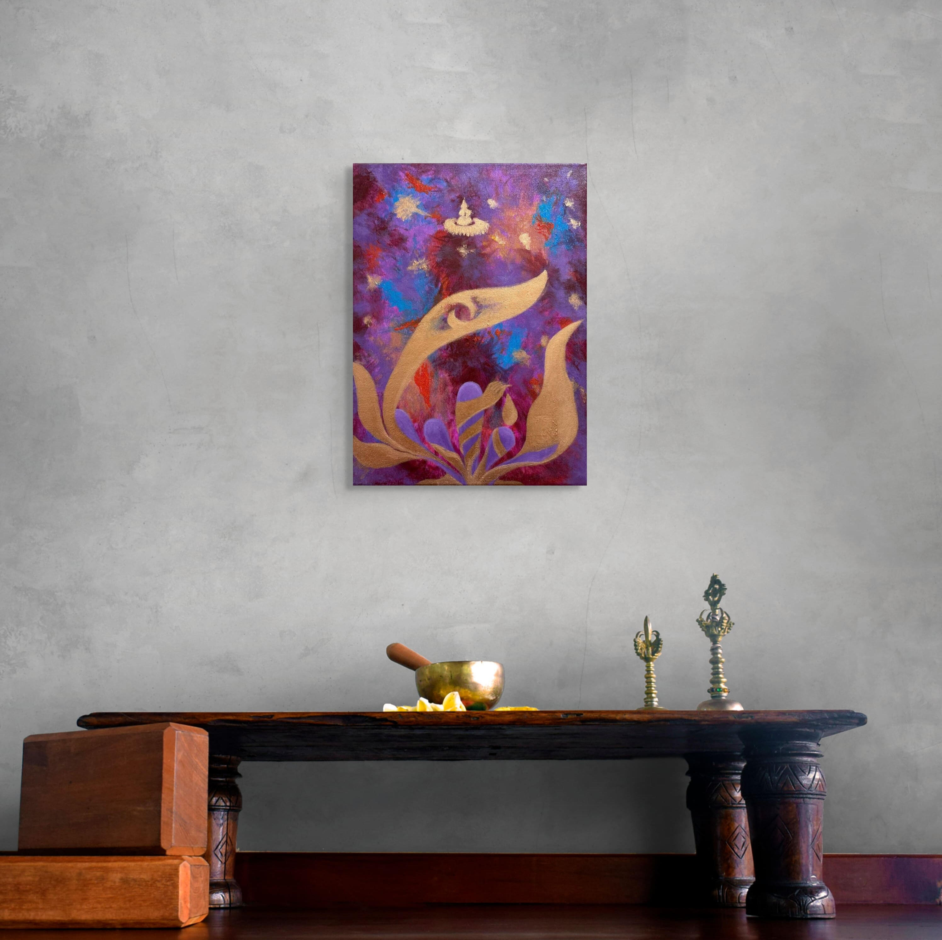 By transcending tangible forms, the work guides the observer toward the "Primordial Awareness"—that radiant, unclouded state of being. Through a pulsating visual rhythm, it recreates the cosmos’s first movement of life. It is a call to recalibrate ourselves with our origin, finding that unborn and undying essence within the chaos of modern reality.30x40cm, Acrylic on Canvas, 2026